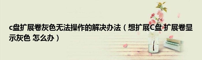 关于c盘扩展卷灰色无法操作的解决办法,想扩展C盘 扩展卷显示灰色 怎么办这个很多人还不知道,今天菲菲来为大家解答以上的问题,现在让我们一起来看看吧!