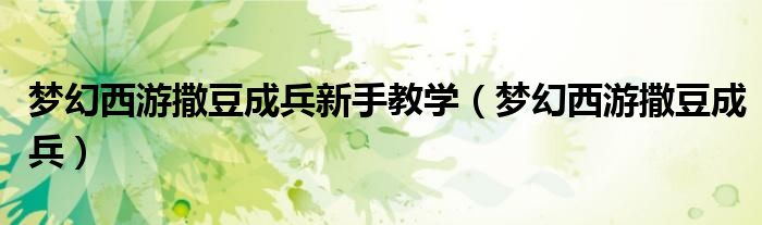 关于梦幻西游撒豆成兵新手教学,梦幻西游撒豆成兵这个很多人还不知道,今天菲菲来为大家解答以上的问题,现在让我们一起来看看吧!