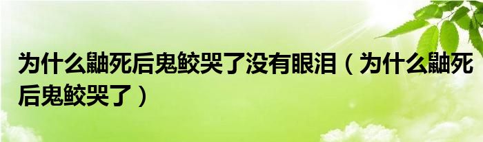 大家好,小晋来为大家解答以下问题,关于为什么鼬死后鬼鲛哭了没有眼泪,为什么鼬死后鬼鲛哭了很多人还不知道,今天让我们一起来看看吧!