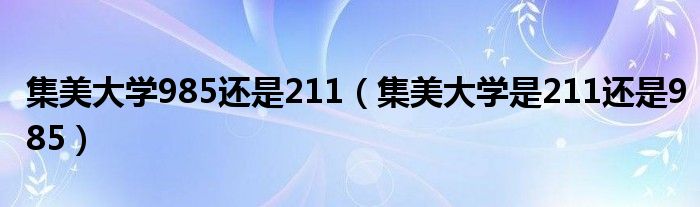 最佳答案关于集美大学985还是211,集美大学是211还是985这个很多人还不知道,今天菲菲来为大家解答以上的问题,现在让我们一起来看看吧!1、集美大学不是211也不是985。2、厦门大学是985。3、福州大学是211。本文到此分享完毕,希望对大家有所帮助。