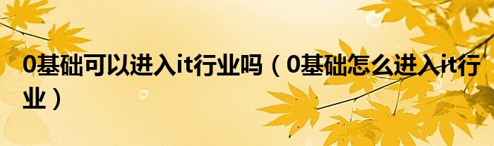 0基础可以进入it行业吗(0基础怎么进入it行业)