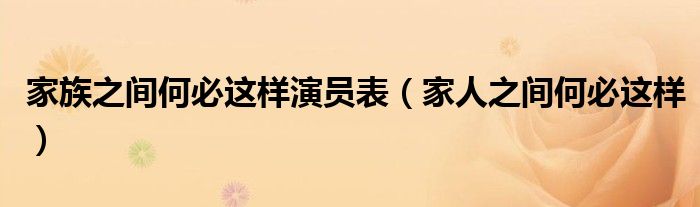 大家好,我是小科,我来为大家解答以上问题。家族之间何必这样演员表,家人之间何必这样很多人还不知道,现在让我们一起来看看吧!