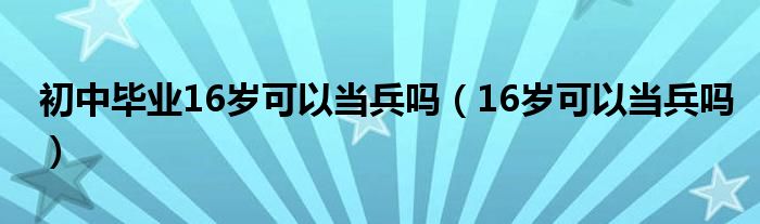 大家好,我是小科,我来为大家解答以上问题。初中毕业16岁可以当兵吗,16岁可以当兵吗很多人还不知道,现在让我们一起来看看吧!