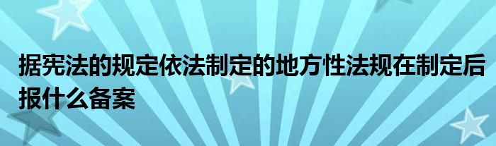 大家好,小联来为大家解答以上的问题。据宪法的规定依法制定的地方性法规在制定后报什么备案这个很多人还不知道,现在让我们一起来看看吧!
