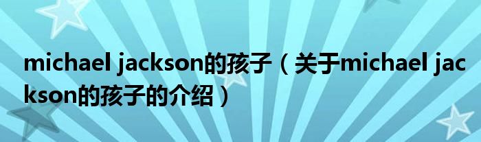 大家好,小夏来为大家解答以上的问题。michael jackson的孩子,关于michael jackson的孩子的介绍很多人还不知道,现在让我们一起来看看吧!