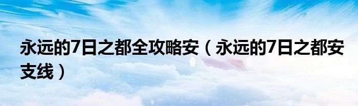 今天小饼为大家解答以下问题,关于永远的7日之都全攻略安,永远的7日之都安支线很多人还不知道,现在让我们一起来看看吧!