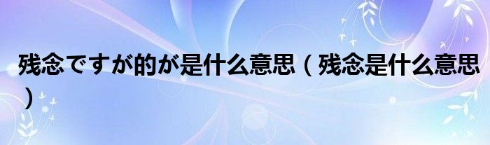 大家好,小联来为大家解答以上的问题。残念ですが的が是什么意思,残念是什么意思这个很多人还不知道,现在让我们一起来看看吧!