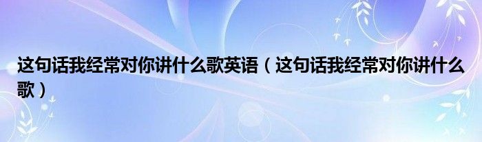 大家好,我是小科,我来为大家解答以上问题。这句话我经常对你讲什么歌英语,这句话我经常对你讲什么歌很多人还不知道,现在让我们一起来看看吧!
