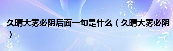 大家好,我是小科,我来为大家解答以上问题。久晴大雾必阴后面一句是什么,久晴大雾必阴很多人还不知道,现在让我们一起来看看吧!