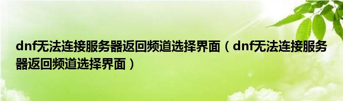 dnf无法连接服务器返回频道选择界面(dnf无法连接服务器返回频道选择界面)