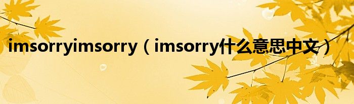大家好,小晋来为大家解答以下问题,关于imsorryimsorry,imsorry什么意思中文很多人还不知道,今天让我们一起来看看吧!