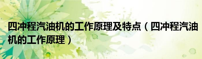 大家好,小晋来为大家解答以下问题,关于四冲程汽油机的工作原理及特点,四冲程汽油机的工作原理很多人还不知道,今天让我们一起来看看吧!