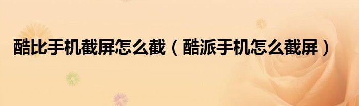 酷比手机截屏怎么截(酷派手机怎么截屏)