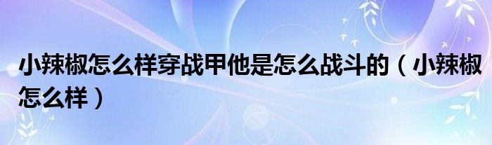 大家好,来宝来为大家解答以下问题,小辣椒怎么样穿战甲他是怎么战斗的,小辣椒怎么样很多人还不知道,今天让我们一起来看看吧!