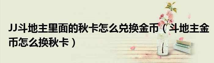 大家好,小晋来为大家解答以下问题,关于JJ斗地主里面的秋卡怎么兑换金币,斗地主金币怎么换秋卡很多人还不知道,今天让我们一起来看看吧!