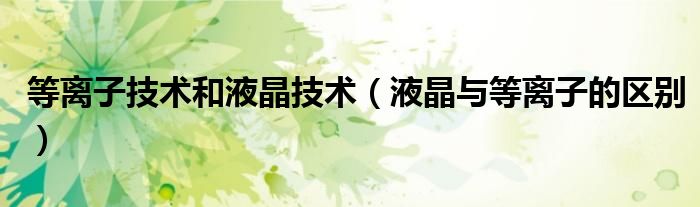 大家好,来宝来为大家解答以下问题,等离子技术和液晶技术,液晶与等离子的区别很多人还不知道,今天让我们一起来看看吧!