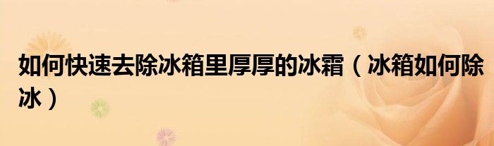 大家好,来宝来为大家解答以下问题,如何快速去除冰箱里厚厚的冰霜,冰箱如何除冰很多人还不知道,今天让我们一起来看看吧!