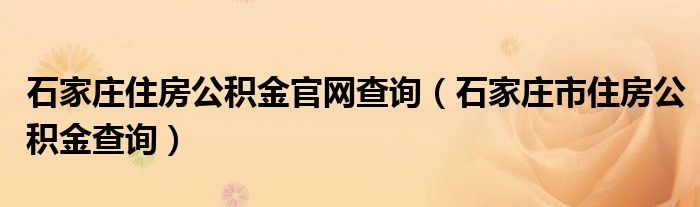 石家庄住房公积金官网查询(石家庄市住房公积金查询)
