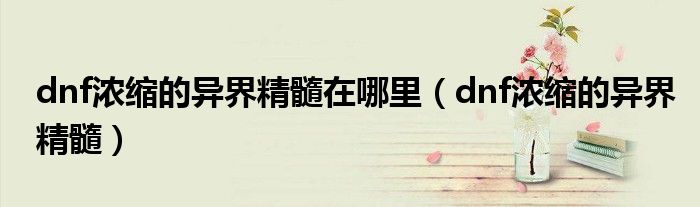 大家好,来宝来为大家解答以下问题,dnf浓缩的异界精髓在哪里,dnf浓缩的异界精髓很多人还不知道,今天让我们一起来看看吧!