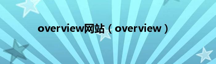 关于overview网站,overview这个很多人还不知道,今天菲菲来为大家解答以上的问题,现在让我们一起来看看吧!