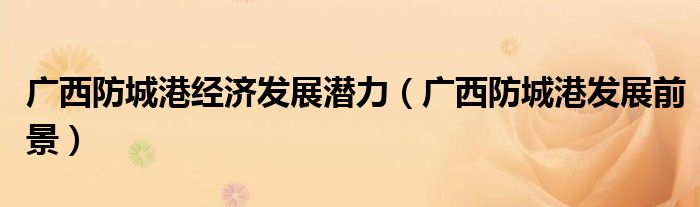 关于广西防城港经济发展潜力,广西防城港发展前景这个很多人还不知道,今天菲菲来为大家解答以上的问题,现在让我们一起来看看吧!