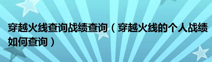 关于穿越火线查询战绩查询,穿越火线的个人战绩如何查询这个很多人还不知道,今天菲菲来为大家解答以上的问题,现在让我们一起来看看吧!