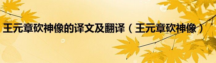 关于王元章砍神像的译文及翻译,王元章砍神像这个很多人还不知道,今天菲菲来为大家解答以上的问题,现在让我们一起来看看吧!