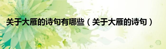 关于关于大雁的诗句有哪些,关于大雁的诗句这个很多人还不知道,今天菲菲来为大家解答以上的问题,现在让我们一起来看看吧!