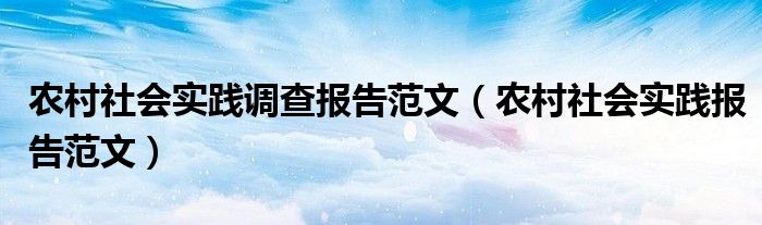 关于农村社会实践调查报告范文,农村社会实践报告范文这个很多人还不知道,今天菲菲来为大家解答以上的问题,现在让我们一起来看看吧!