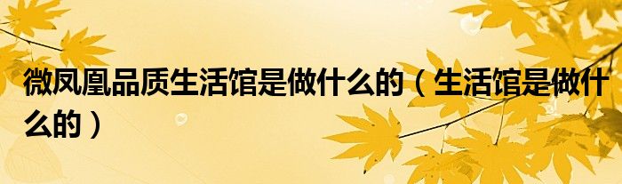 大家好,小晋来为大家解答以下问题,关于微凤凰品质生活馆是做什么的,生活馆是做什么的很多人还不知道,今天让我们一起来看看吧!