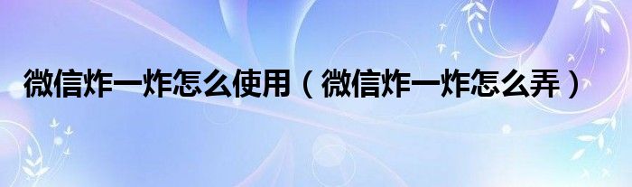 大家好,来宝来为大家解答以下问题,微信炸一炸怎么使用,微信炸一炸怎么弄很多人还不知道,今天让我们一起来看看吧!