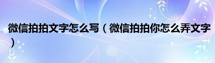 大家好,来宝来为大家解答以下问题,微信拍拍文字怎么写,微信拍拍你怎么弄文字很多人还不知道,今天让我们一起来看看吧!