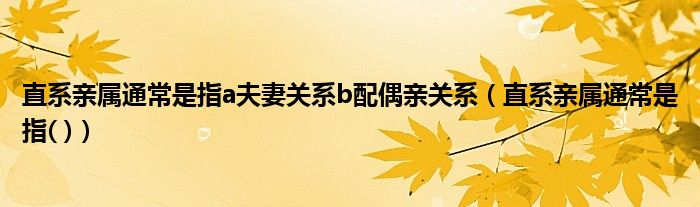 关于直系亲属通常是指a夫妻关系b配偶亲关系,直系亲属通常是指( )这个很多人还不知道,今天菲菲来为大家解答以上的问题,现在让我们一起来看看吧!