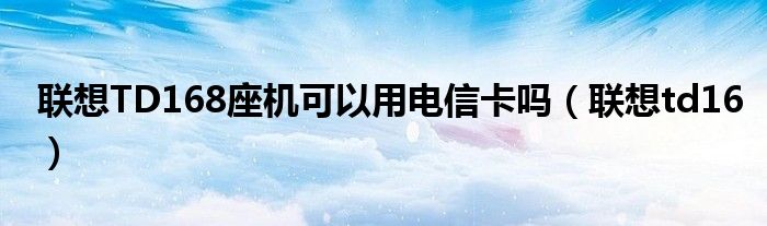 大家好,来宝来为大家解答以下问题,联想TD168座机可以用电信卡吗,联想td16很多人还不知道,今天让我们一起来看看吧!