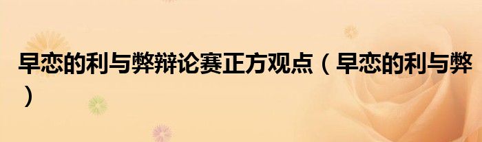 关于早恋的利与弊辩论赛正方观点,早恋的利与弊这个很多人还不知道,今天菲菲来为大家解答以上的问题,现在让我们一起来看看吧!