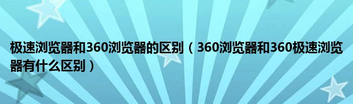 关于极速浏览器和360浏览器的区别,360浏览器和360极速浏览器有什么区别这个很多人还不知道,今天菲菲来为大家解答以上的问题,现在让我们一起来看看吧!