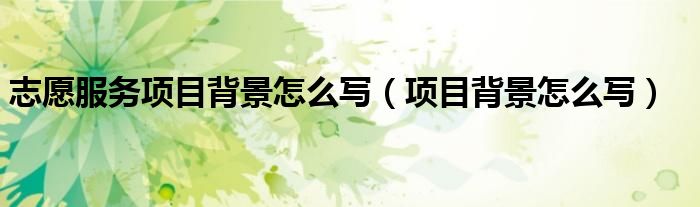 关于志愿服务项目背景怎么写,项目背景怎么写这个很多人还不知道,今天菲菲来为大家解答以上的问题,现在让我们一起来看看吧!