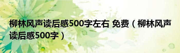 关于柳林风声读后感500字左右 免费,柳林风声 读后感500字这个很多人还不知道,今天菲菲来为大家解答以上的问题,现在让我们一起来看看吧!