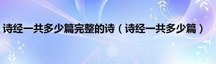 关于诗经一共多少篇完整的诗,诗经一共多少篇这个很多人还不知道,今天菲菲来为大家解答以上的问题,现在让我们一起来看看吧!