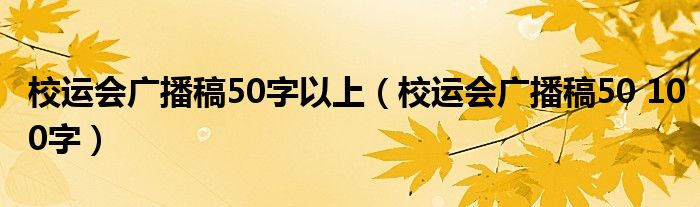 关于校运会广播稿50字以上,校运会广播稿50 100字这个很多人还不知道,今天菲菲来为大家解答以上的问题,现在让我们一起来看看吧!