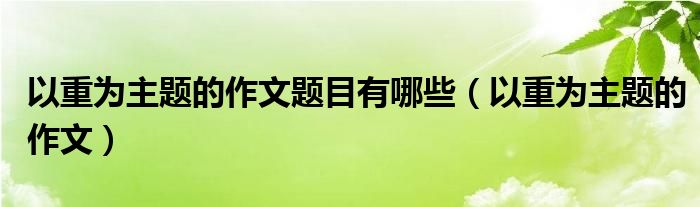 关于以重为主题的作文题目有哪些,以重为主题的作文这个很多人还不知道,今天菲菲来为大家解答以上的问题,现在让我们一起来看看吧!