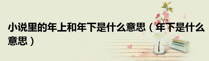 关于小说里的年上和年下是什么意思,年下是什么意思这个很多人还不知道,今天菲菲来为大家解答以上的问题,现在让我们一起来看看吧!