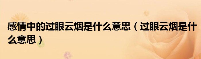 关于感情中的过眼云烟是什么意思,过眼云烟是什么意思这个很多人还不知道,今天菲菲来为大家解答以上的问题,现在让我们一起来看看吧!