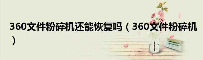 大家好,来宝来为大家解答以下问题,360文件粉碎机还能恢复吗,360文件粉碎机很多人还不知道,今天让我们一起来看看吧!