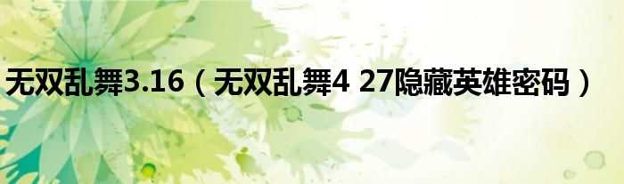 关于无双乱舞3.16,无双乱舞4 27隐藏英雄密码这个很多人还不知道,今天菲菲来为大家解答以上的问题,现在让我们一起来看看吧!