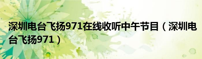 深圳电台飞扬971在线收听中午节目,深圳电台飞扬971这个很多人还不知道,小飞来为大家解答以上的问题。现在让我们一起来看看吧!