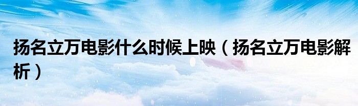 扬名立万电影什么时候上映,扬名立万电影解析这个很多人还不知道,小飞来为大家解答以上的问题。现在让我们一起来看看吧!