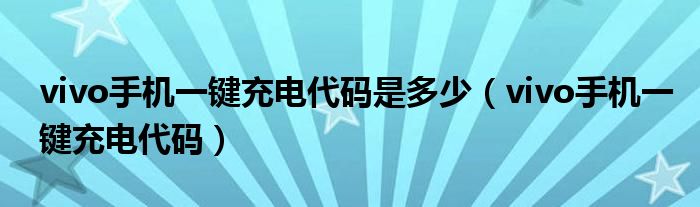 大家好,小晋来为大家解答以下问题,关于vivo手机一键充电代码是多少,vivo手机一键充电代码很多人还不知道,今天让我们一起来看看吧!