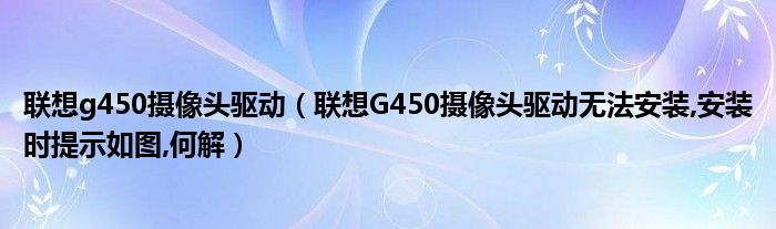 大家好,小常来为大家解答以上问题。联想g450摄像头驱动,联想G450摄像头驱动无法安装,安装时提示如图,何解很多人还不知道,现在让我们一起来看看吧!
