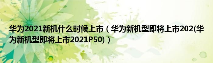 大家好,小常来为大家解答以上问题。华为2021新机什么时候上市,华为新机型即将上市202(华为新机型即将上市2021P50)很多人还不知道,现在让我们一起来看看吧!
